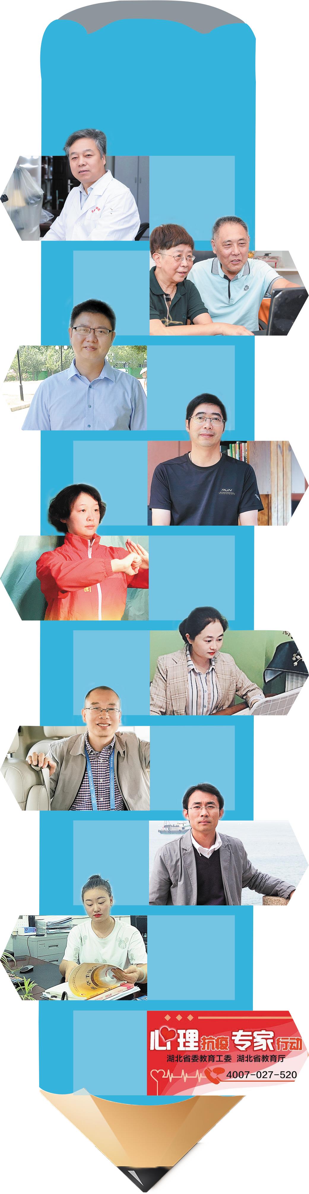 湖北省高校心理健康专家服务队,是由湖北省80余所高校近300名心理健康教师组成的抗疫心理援助专家队伍,自2020年1月由中共湖北省委教育工委、省教育厅组建,至今不间断坚守云端,为需要帮助的省内外民众提供心理支持。接听心理热线、开设网络咨询室、编纂心理防疫手册、发表心理辅导文章、开展线上团体辅导、参与社区志愿服务……他们用敬业、奉献和专业贡献赢得“坚守云端的护心使者”的美誉。