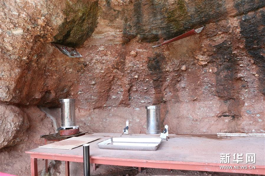 这是麦积山石窟中的一处山体渗水监测点(9月6日摄)。 新华社记者 耿馨宁 摄