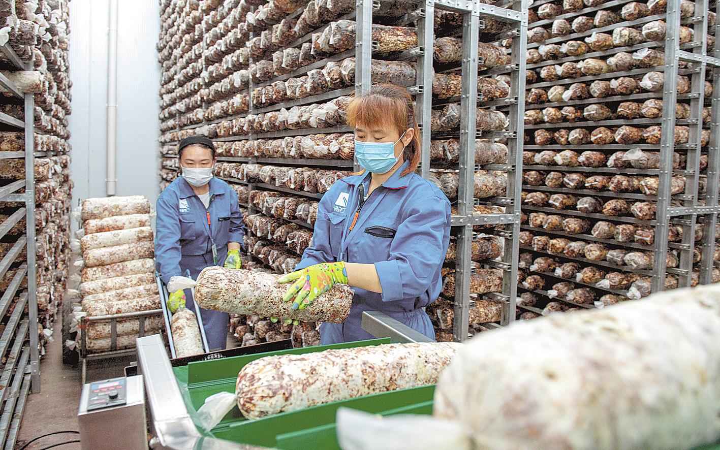 走进绿筷子菌业科技有限公司养菌车间,工人们娴熟地给菌棒“梳妆打扮”。