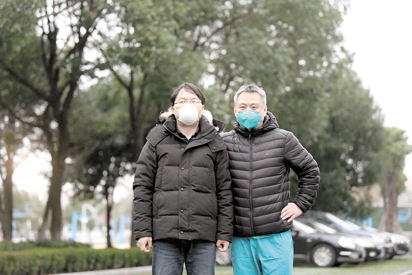 2月初,孙鹏(左)和唐子人在武汉协和医院西院。 (图片均由受访者提供)