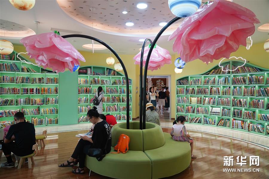9月8日,读者们在高新区图书馆儿童阅读区内阅读。新华社记者 周密 摄