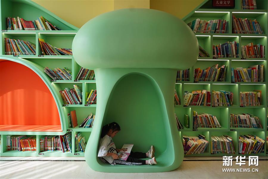 9月8日,一位小朋友在高新区图书馆儿童阅读区内阅读。 新华社记者 周密 摄