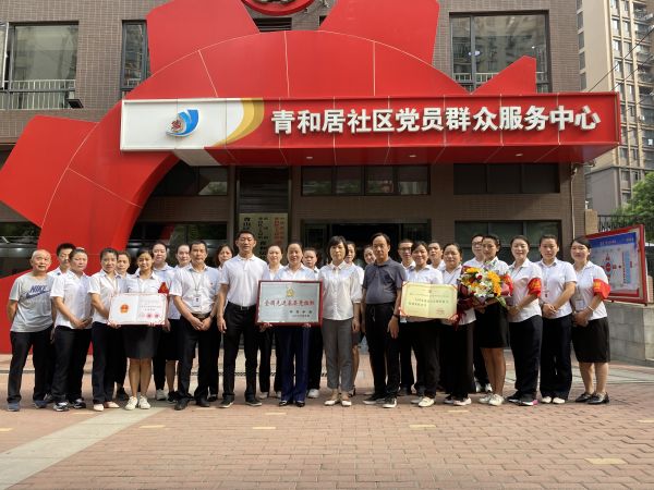 青和居社区全体成员与奖牌合影留念。通讯员供图