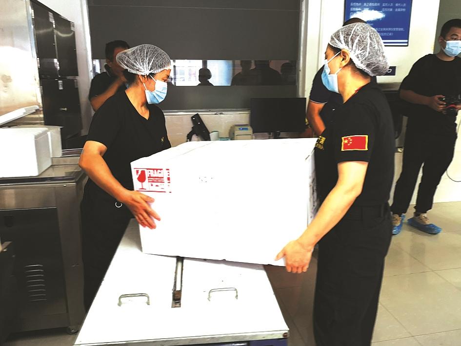 三峡晚报讯(全媒记者李仁玺 通讯员朱灿义)9月9日,因疫情中断8个月的宜都鱼子酱出口“解冻”。当日,一辆载有300公斤新鲜鱼子酱产品的冷冻车从湖北清江鲟鱼谷水产品加工公司驶出,这批鱼子酱产品将由香港转机运往英国伦敦,总价值人民币100余万元(如图)。