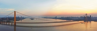 ▲黄昏时分,武汉天空晚霞绚烂,杨泗港长江大桥犹如一条巨龙横卧在大江之上,在夕阳下显得格外壮观,尽显雄伟壮阔之美。