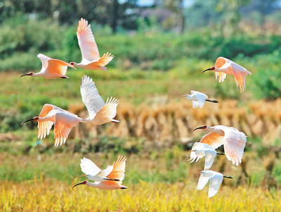 朱鹮竞翔。 张跃明摄