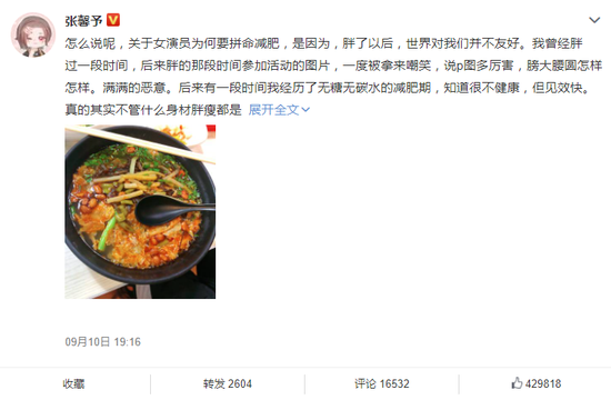 张馨予最后呼吁,希望大家对于女演员的胖瘦不要太苛刻,“演员的形态可以千变万化,皮肉的美,终究不过一颗赤子之心。”