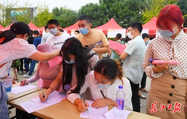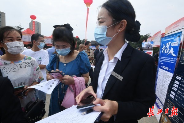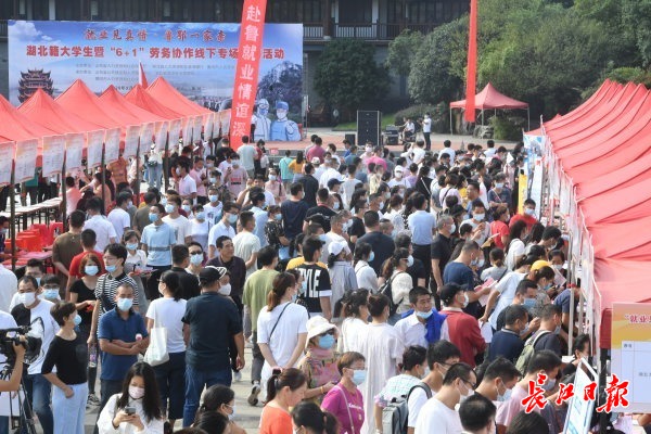 长江网9月11日讯9月11日,由湖北省人社厅、山东省人社厅联合举办的“就业见真情 鲁鄂一家亲”为主题的大学生暨“6+1”劳务协作现场招聘活动在黄冈市举行。此次招聘会重点帮助高校毕业生、贫困劳动力、退捕渔民就业。来自山东省的121家招聘企业,提供岗位11740个,3000名有就业意愿的劳动者进场求职。(记者李子云 通讯员曹妤 摄影报道)
