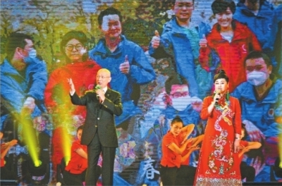 刘子微和关栋天在开幕式合唱京歌《英雄之城》。