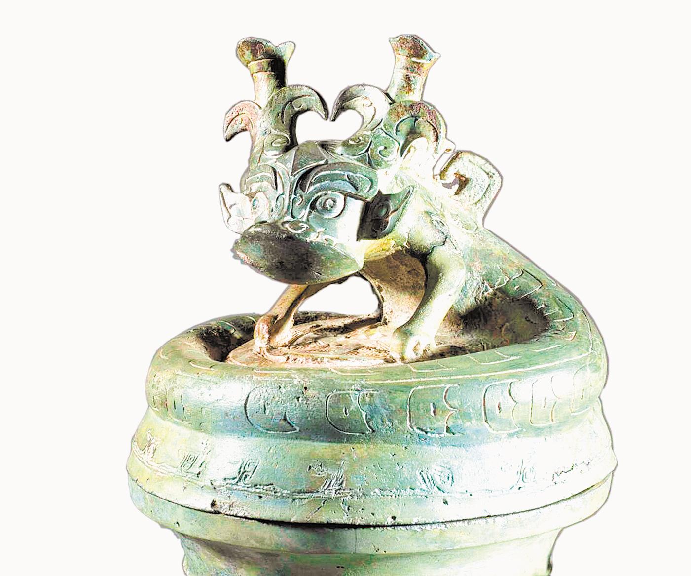此次展出的青铜蟠龙盖罍。(图片由湖北省博物馆提供)