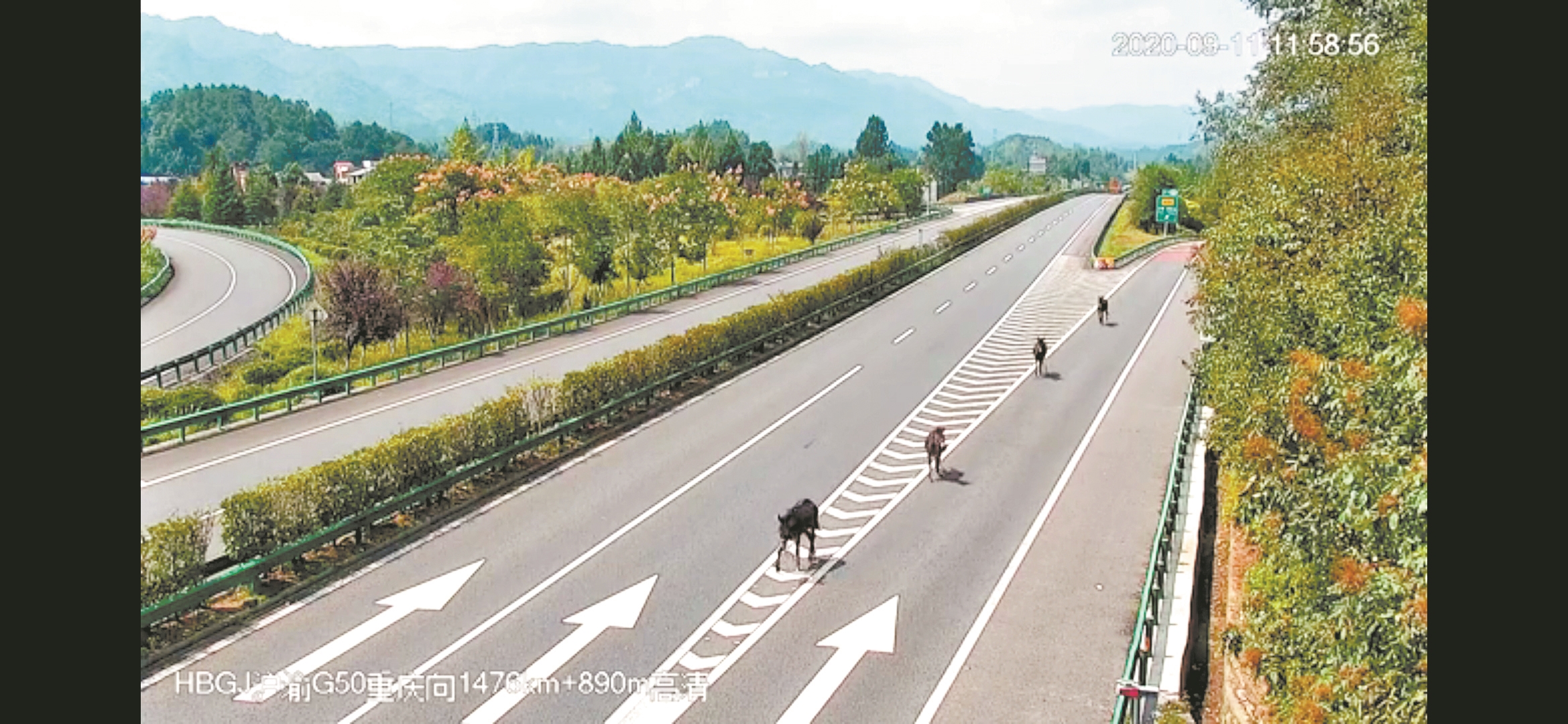 9月11日中午,省高警利川大队值班室接到报警称:四匹马儿从沪渝高速公路汪营收费站冲上高速,逆行向利川方向逃窜,情况危急,请求出警。值班室民警迅速通过监控查看险情确定逃窜马匹位置,同时通知路面巡逻民警对逆行的马儿进行“围追堵截”。民警第一时间赶至沪渝向1474KM+400M处发现,四匹马儿在路上撒欢,不紧不慢悠闲踱步,迎面不时有车辆飞驰而过。有时路过的车辆避让鸣笛,马儿就扬蹄跑一会,大部分车辆都会紧急刹车,就怕一旦撞上后果严重。民警立即在路面后方摆放锥筒进行警戒,关掉警笛并示意过往车辆减速,慢行跟随且不按喇叭以免惊扰马儿。