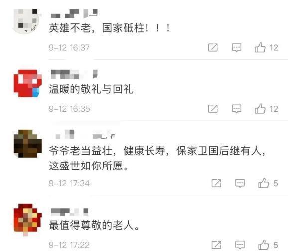老人也马上回敬了一个标准的军礼