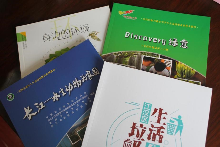 这些发现和探索,一起汇编进了校本课程教材:《Discovery绿意》。薄薄的小册子,图文并茂地介绍了如何探索发现植物、如何鉴别和养护植物等,鼓励学生们从身边做起,发现自然、爱护环境。此外学校还将参与编写的长江流域区域性教材《长江水生动物的家园》、参与编写的区级环境教材《江汉区生活垃圾分类》以及武汉市环境教材《身边的环境》纳入学校自然教育校本课程体系,分年级供学生使用。