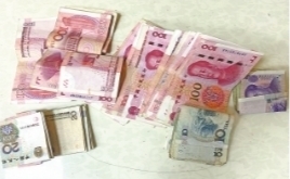 从嫌疑人身上搜出的赃款。