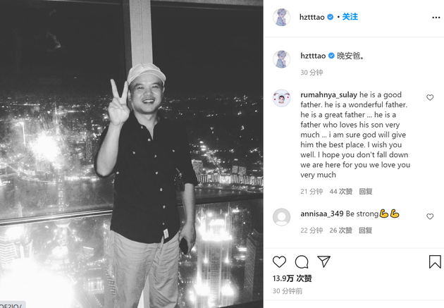 网易娱乐9月15日报道 14日晚,黄子韬在社交平台晒出一张父亲的黑白照片,并配文:“晚安爸”,悼念因病去世的父亲。照片中,黄爸爸戴着帽子,站在窗前,一手比着耶,笑容灿烂又温暖。