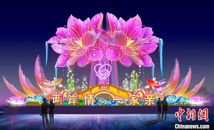 汇聚两岸文化精粹、彰显两岸民俗特色的百余组花灯将亮相海峡两岸(昆山)中秋灯会。图为“两岸情一家亲”灯组效果图。昆山宣传部供图
