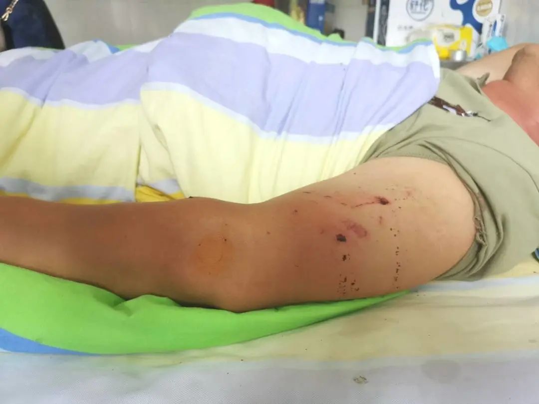回过神来后,刘先生报了警。经到达现场的医护人员检查发现,他的左臂和左腿多处被猴子抓伤、咬伤,鲜血直流。背部有衣服保护,只有很多抓痕、没有大量出血的伤口。