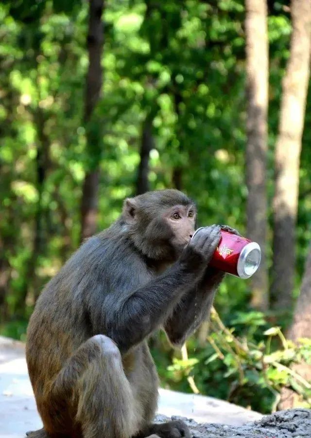 △泸山的猴子抢夺游客手中的饮料