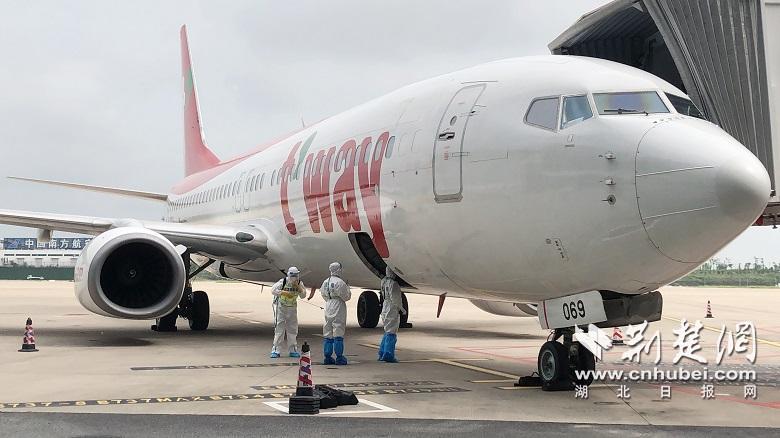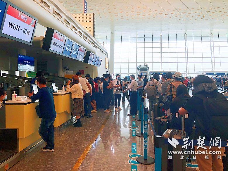 时隔8个月后武汉首条国际客运航线复航。记者 林琳摄