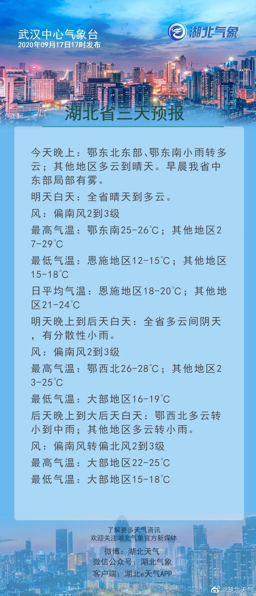 今天下午湖北上空被厚厚的云层覆盖,与昨天(16日)同一时次相比,除十堰外,大部分地区气温有3-5°C下滑。凉爽的天气来了,你穿上长袖长裤了吗?