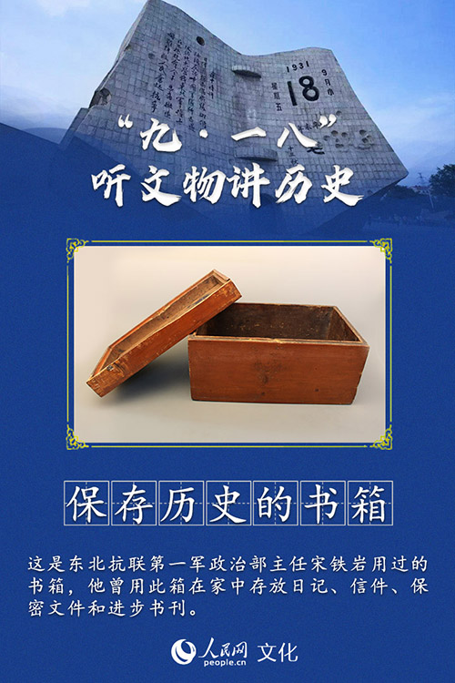 1937年2月11日,东北抗联第一军政治部主任宋铁岩在与日伪军的激战中壮烈牺牲,将热血洒在了他誓死捍卫的白山黑水间,年仅28岁。这个书箱是1926年宋铁岩结婚时新做的书箱,盖内有他的笔迹。他曾用这个书箱在家中存放日记、信件、保密文件和进步书刊。