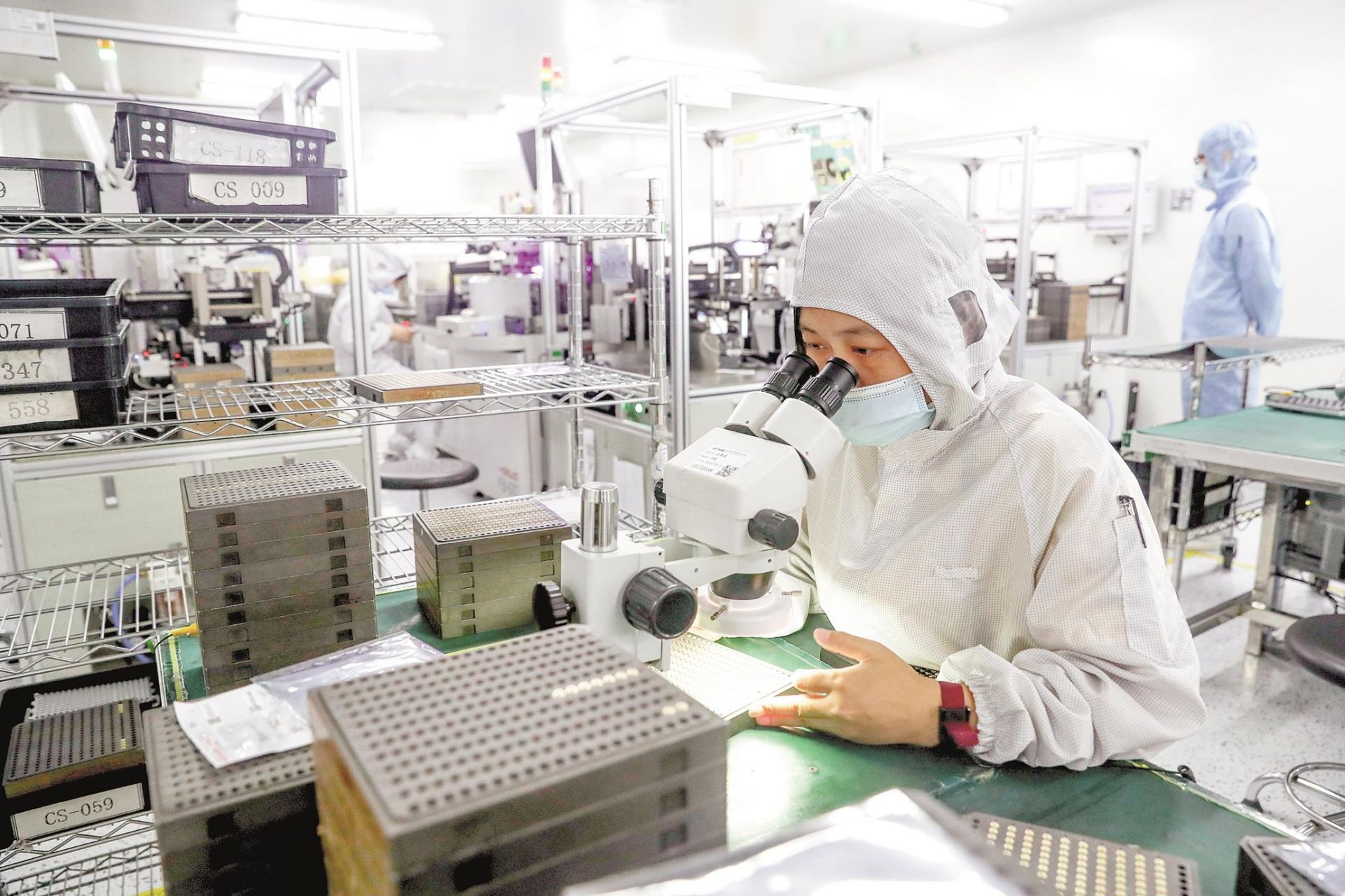9月16日,鄂州葛店开发区,鄂州灿光光电有限公司生产车间,员工忙生产赶订单。自3月复工复产以来,灿光光电一直满负荷生产,员工人数较去年增加60%。截至8月底,灿光光电实现产值2.2亿元,同比增长50%。 (湖北日报全媒记者 薛婷 通讯员 夏明光 张樱宁 摄)
