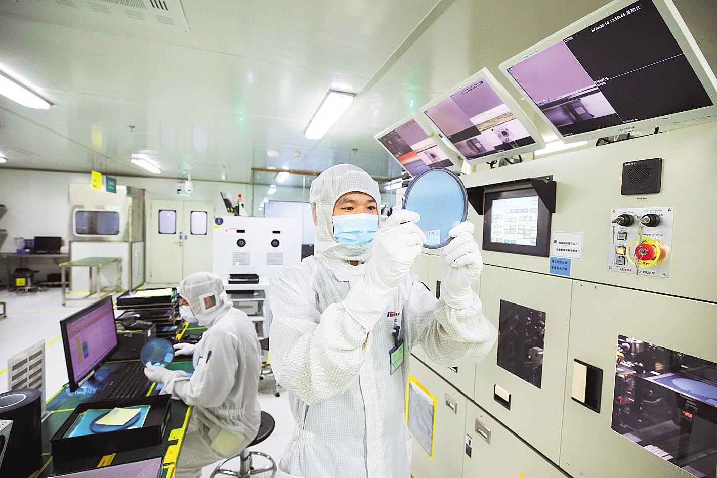 9月16日,湖北光安伦芯片有限公司(葛店开发区)芯片测试车间,技术人员正在进行待测芯片检查。该公司跟踪高速芯片技术前沿,与多家科研院所展开技术合作,在高速芯片等领域拥有多项发明专利,其产品广泛运用于光纤通信及光纤传感等领域。目前,该公司开足马力赶工期,销售订单同比增长18%。