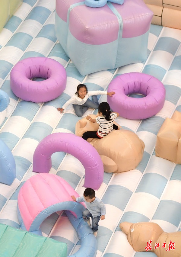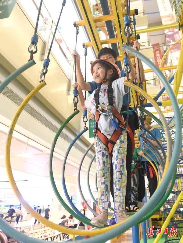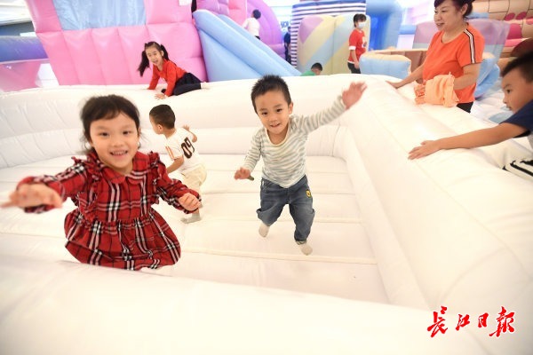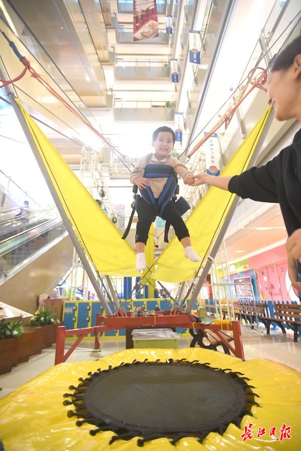 长江网9月20日讯9月20日上午,记者在汉口一购物中心看到,不少市民带着孩子前来享受周末时光。在购物中心的中庭及室内游乐场到处都是小孩子们快乐玩耍的身影。(记者周超 摄影报道)