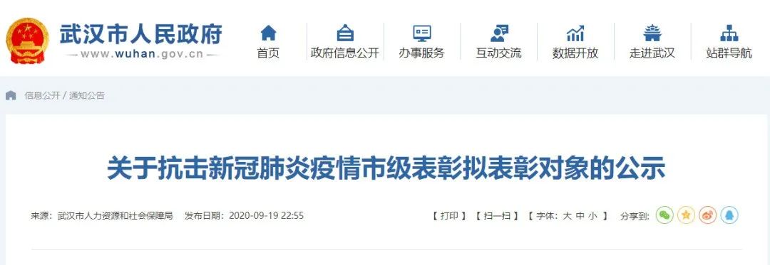 为充分发扬民主、广泛听取意见、接受社会监督,根据有关规定,现就拟表彰对象进行公示,公示期为2020年9月19日至9月21日。对武汉市抗击新冠肺炎疫情先进个人、先进集体拟表彰对象有异议的,请于公示期内向武汉市抗击新冠肺炎疫情表彰工作领导小组办公室反映;对全市优秀共产党员、全市先进基层党组织拟表彰对象有异议的,请于公示期内向武汉市委组织部反映。反映形式为电话、信函,信函以到达日邮戳为准。以单位名义反映情况的材料需加盖单位公章,以个人名义反映情况的材料应署实名,并提供联系电话。