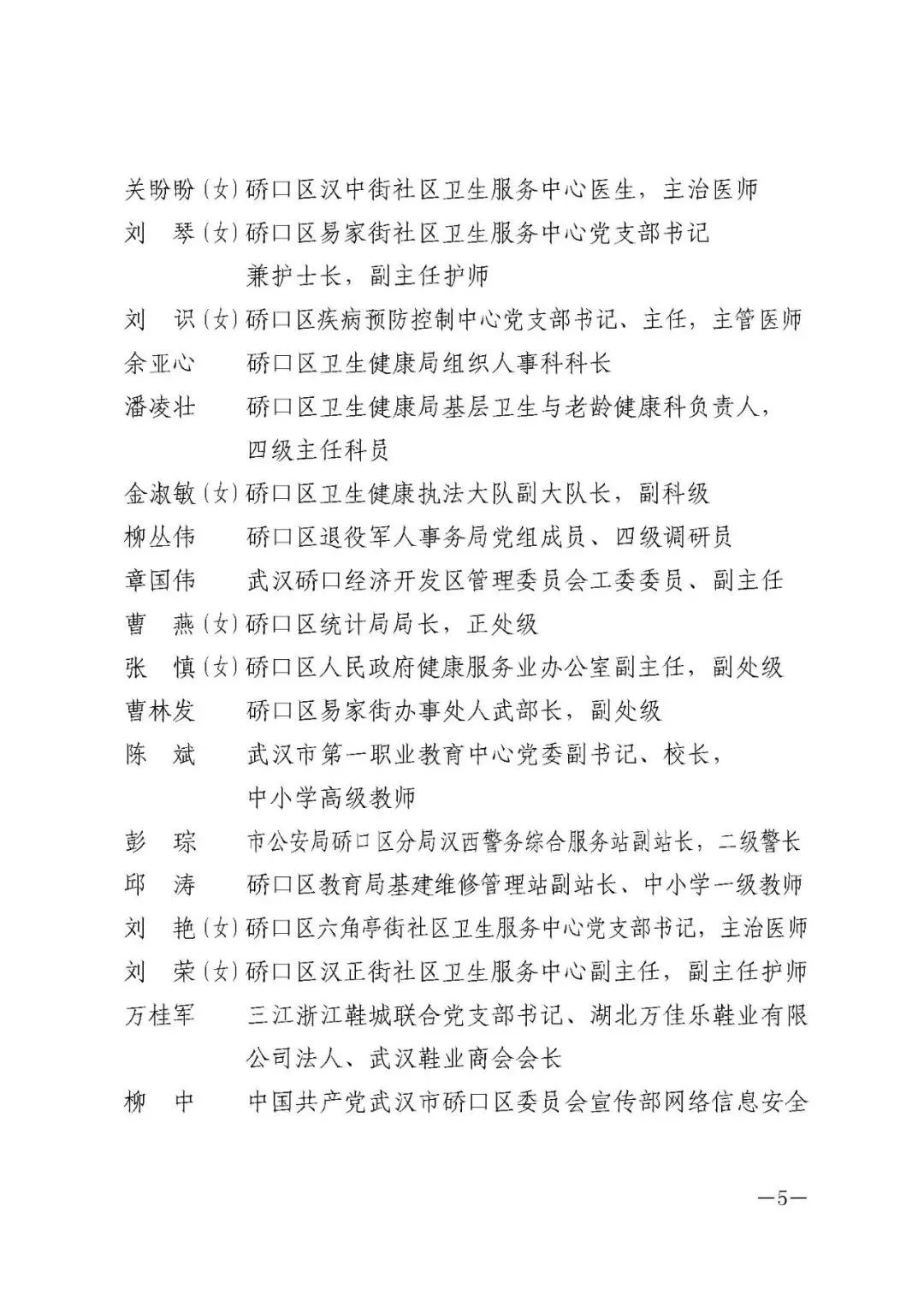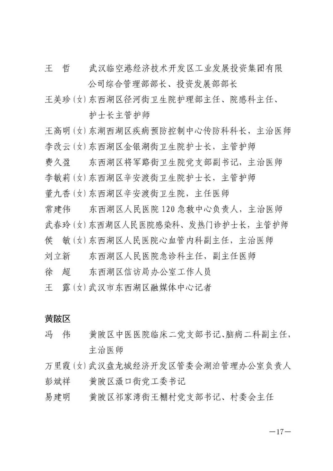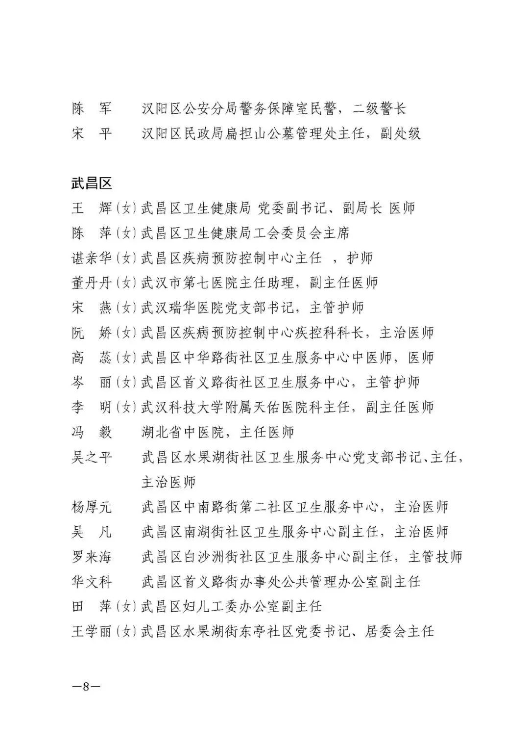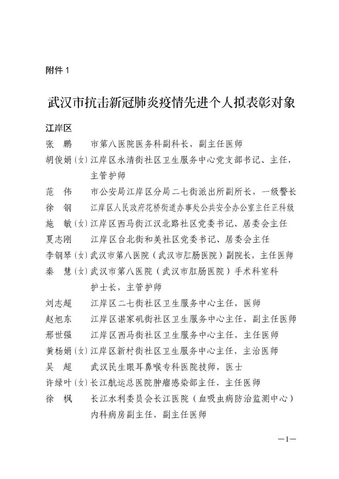 1.武汉市抗击新冠肺炎疫情先进个人拟表彰对象