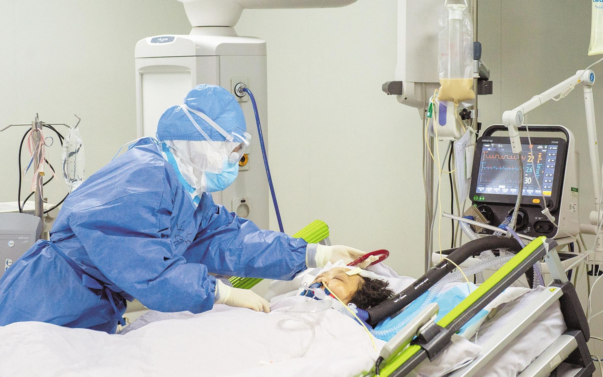 3月2日,武汉市第一医院ICU病房,医护人员使用ECMO救治新冠肺炎重症患者。 (湖北日报全媒记者 蔡俊 摄)