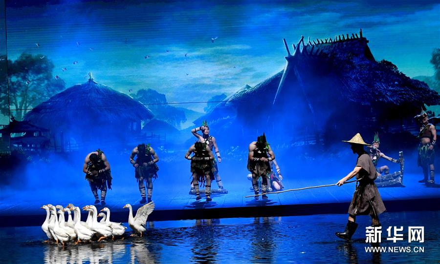 9月19日,演员在大型歌舞《黄帝千古情》中演出。新华社记者 朱祥 摄