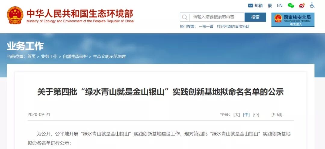 关于第四批“绿水青山就是金山银山”实践创新基地拟命名名单的公示
