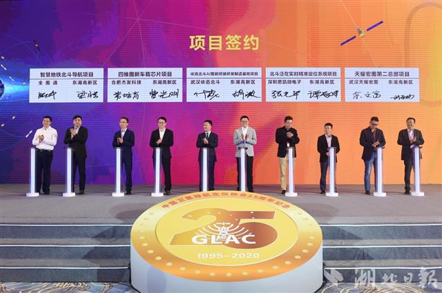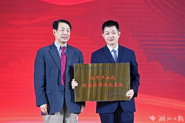 图为会上,东湖高新区被中国卫星导航协会授牌为“北斗产业应用创新基地”。