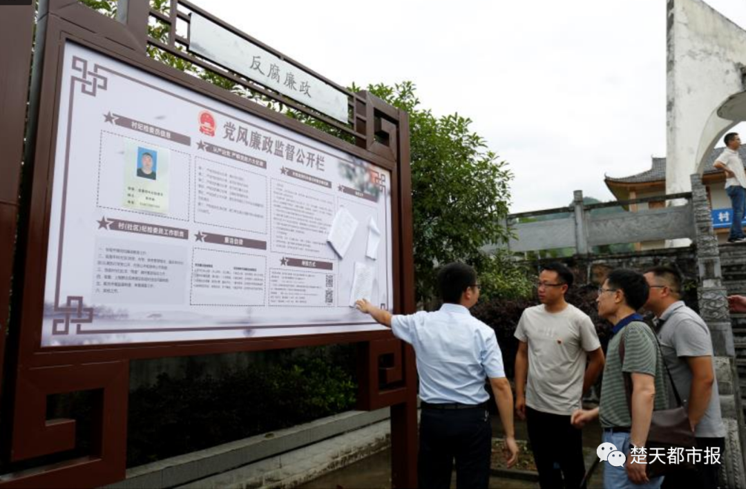 谢睿(左二)指导廉政标牌