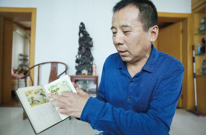 还有一本上世纪五十年代的老旧笔记本,里面隔10多页就有一张插页,多为孩童、花朵等图像。记者看到,时隔60多年,这些插页依旧色彩艳丽。张先生告诉记者,在那个年代,印刷调色不依靠机器,都是人工配色,因此色彩靓丽,做工精美。