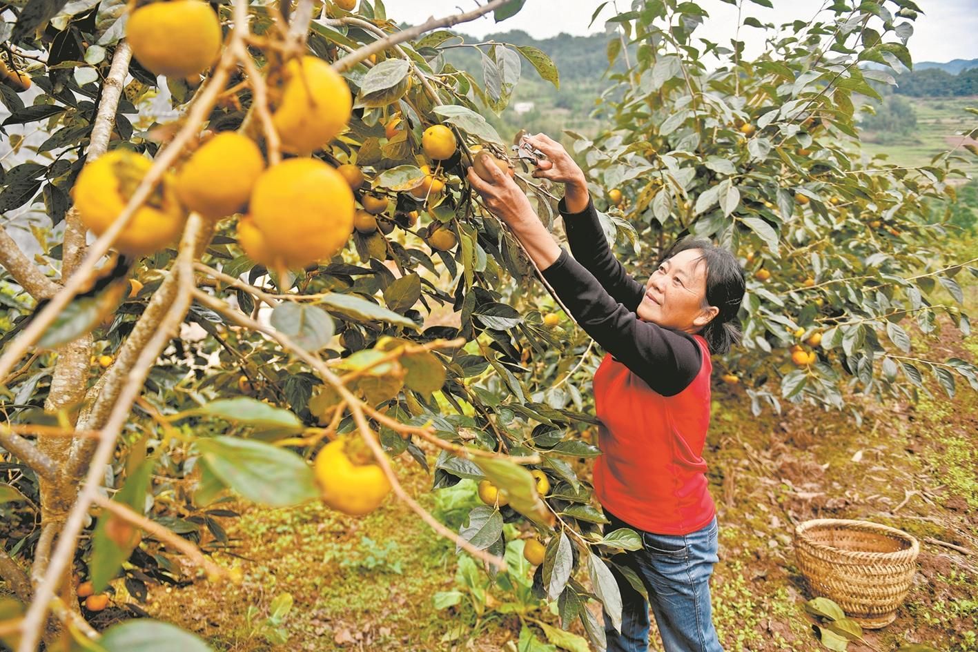 龙潭司村,谢睿扶贫引进的200亩新品柿子熟了,居民笑了