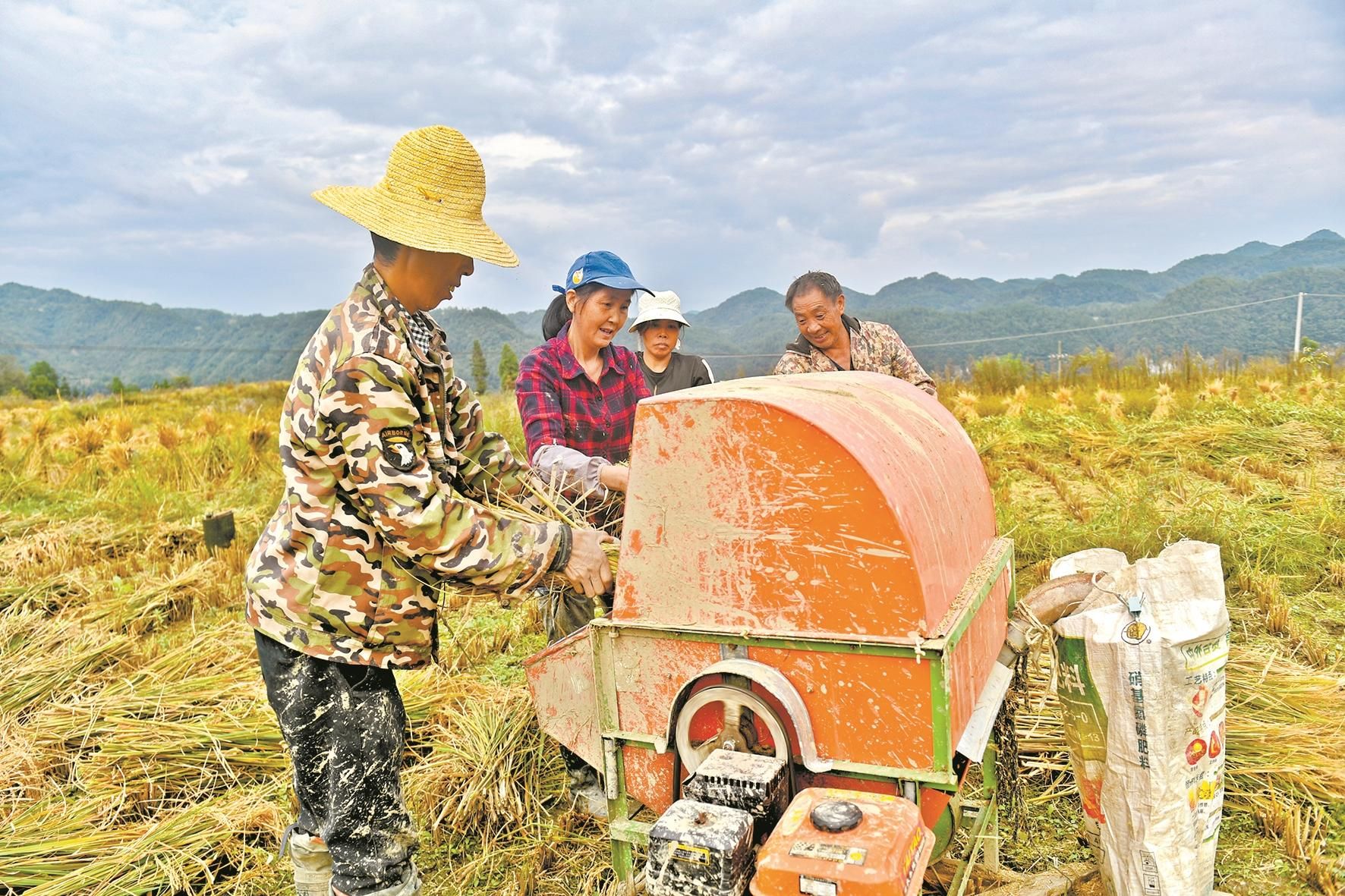 二台坪村,村民在希望的田野上收割稻谷
