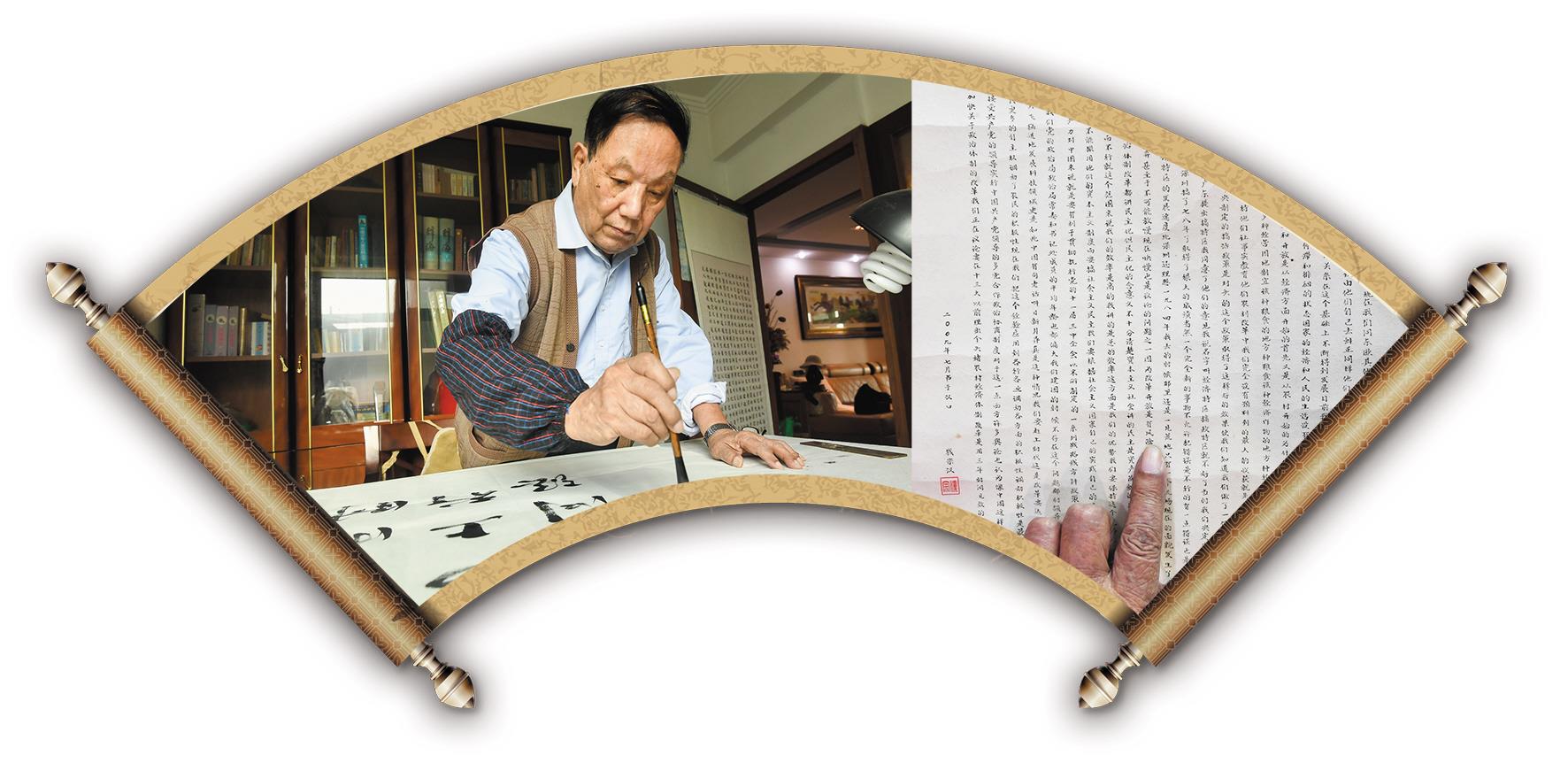 钱老则说,他虽然和老伴爱好不同,但是两个人能互相理解,彼此欣赏。一起携手走过风风雨雨几十载,他很感谢老伴对自己的支持。“可费劲了,开始写的时候脑袋疼,胳膊肘也疼。”钱老开心地说,刚开始抄书的时候本没当回事,后来抄出了“手劲儿”,同时,正是有了老伴儿和儿孙们的支持,就更有心劲儿抄下去了,“孩子们还经常拿着我所书写的书法送人,逢年过节的时候我可忙着呢!”