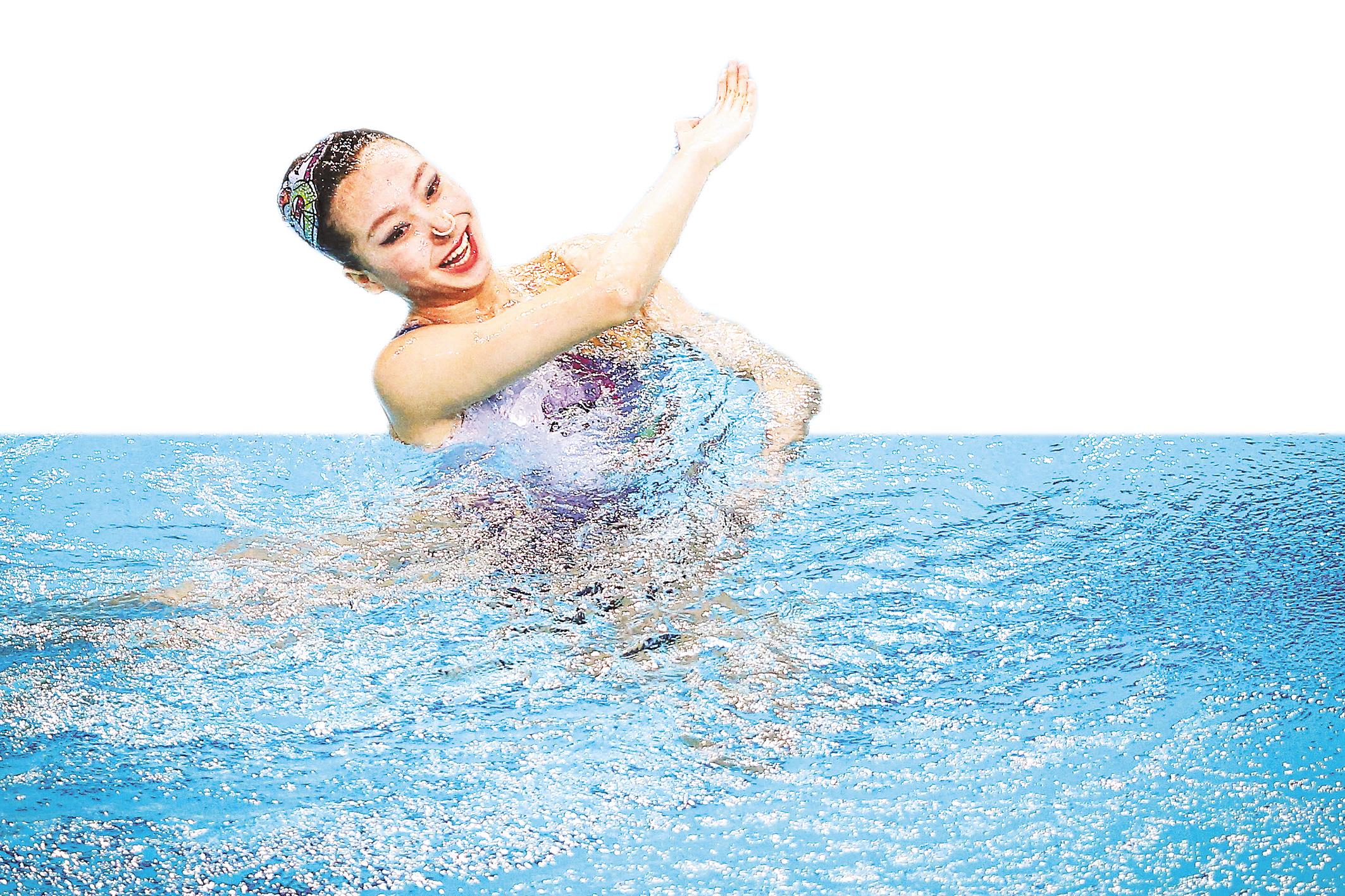 9月25日,2020年全国花样游泳锦标赛在武汉体育中心游泳馆开赛,这是疫后首个在武汉举办的全国性体育赛事,来自全国各地的9支队伍180余名运动员来汉参赛。为期三天的赛事采用全封闭式管理、现场无观众的方式进行,观众可通过网络观看直播。图为比赛现场。(湖北日报全媒记者 时龚 马明玉 摄)