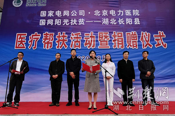 活动当天还举办了国家电网公司医疗扶贫项目捐赠仪式。仪式上,国家电网有限公司向长阳捐赠一批总价值102万元的医疗设备及药品。长阳县卫生健康局党组书记、局长张宏毅代表全县卫生健康系统接受爱心捐赠。