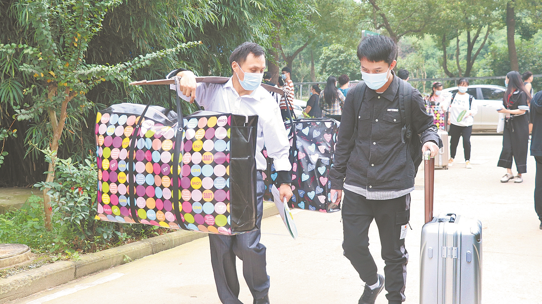 楚天都市报讯(记者国倩 通讯员彭宠 李洋洋 孙伊珞)一根扁担压在肩上,扁担的两头挑的是孩子沉甸甸的行李和家庭的希望。昨日,武汉工商学院迎来近3000名2020级本科新生开学报到,其中有一对武汉蔡甸的龙凤胎兄妹。巧的是,兄妹俩的专业也是同一个。
