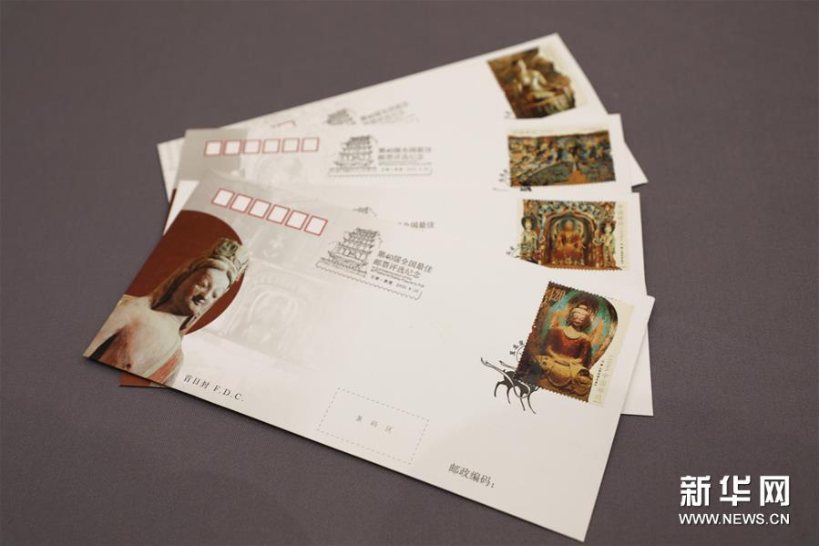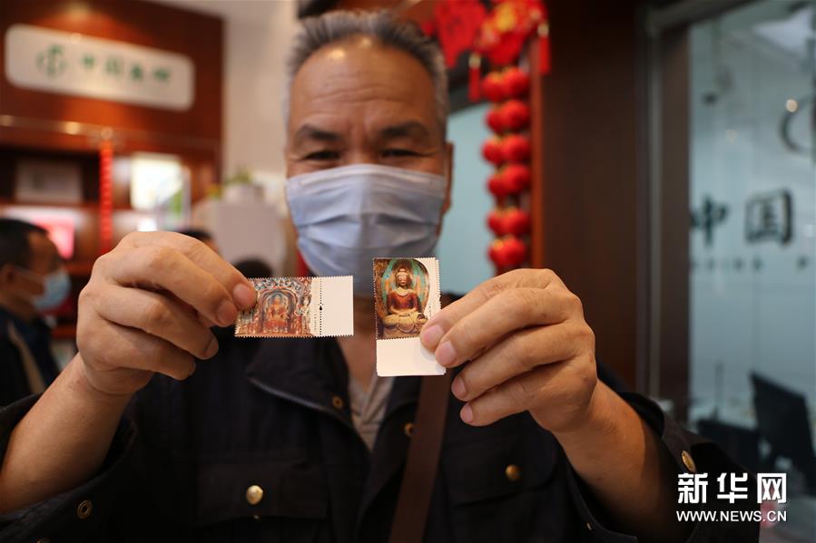 2020年9月26日,中国邮政发行《莫高窟》特种邮票一套4枚,小型张1枚。邮票计划发行数量为790万套,小型张计划发行数量620万枚。 新华社记者 李杰 摄