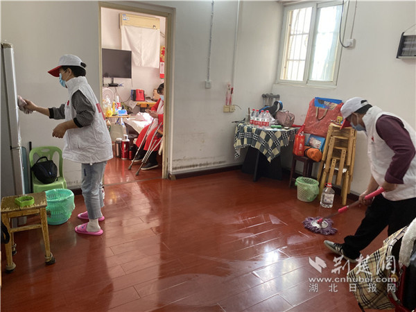 红十字志愿者上门为残疾人做卫生。 (通讯员供图)