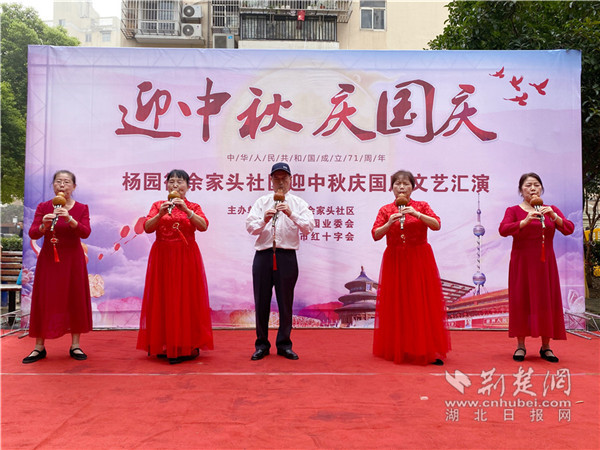 荆楚网客户端—荆楚网消息(记者李燕 通讯员林学锋)9月24日上午,为迎接“中秋”“国庆”双节来临,武昌区余家头社区携手武汉市红十字爱洒人间志愿服务队,在安胜花园举办“迎中秋、庆国庆”文艺汇演,社区文艺团队、志愿者及辖区居民共200余人参加活动。