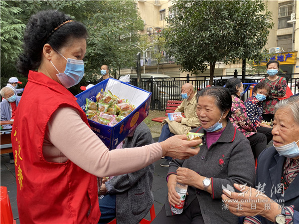 社区志愿者为老人免费发放月饼。 (通讯员供图)