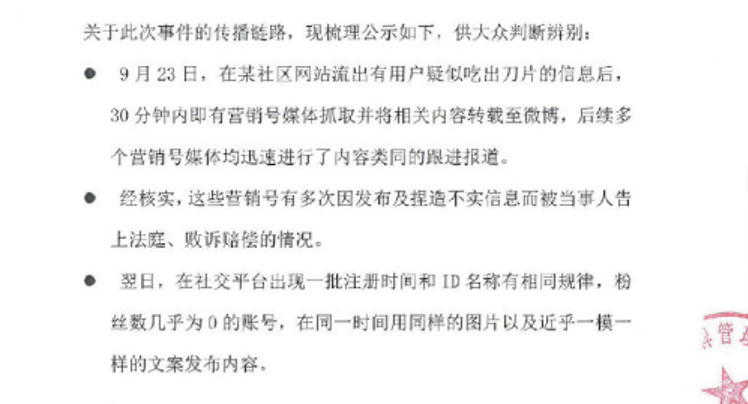 李子柒品牌官方微博回应:未发现涉事刀片存在