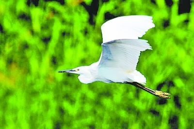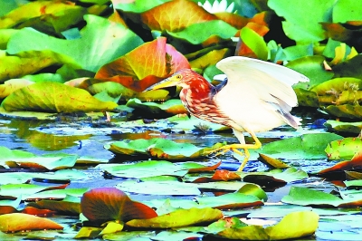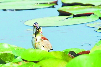 本报记者28日来到杨春湖探访,湖边聚集着不少鸟类摄影爱好者,架起“长枪短炮”捕捉鸟儿的各种姿态。在杨春湖西区水域中央,一大片茂盛的鸢尾随风摇摆,宛如给湖水围上一条翠绿的丝带。相比西区的婉约动人,杨春湖东区则更添一分野趣。湖畔栽种茂盛的菖蒲,湖中点缀着萍逢草和印度红莲,不时有各种鸟类在水草中休憩觅食。湖面上,管理人员正划着小船打捞杂草。