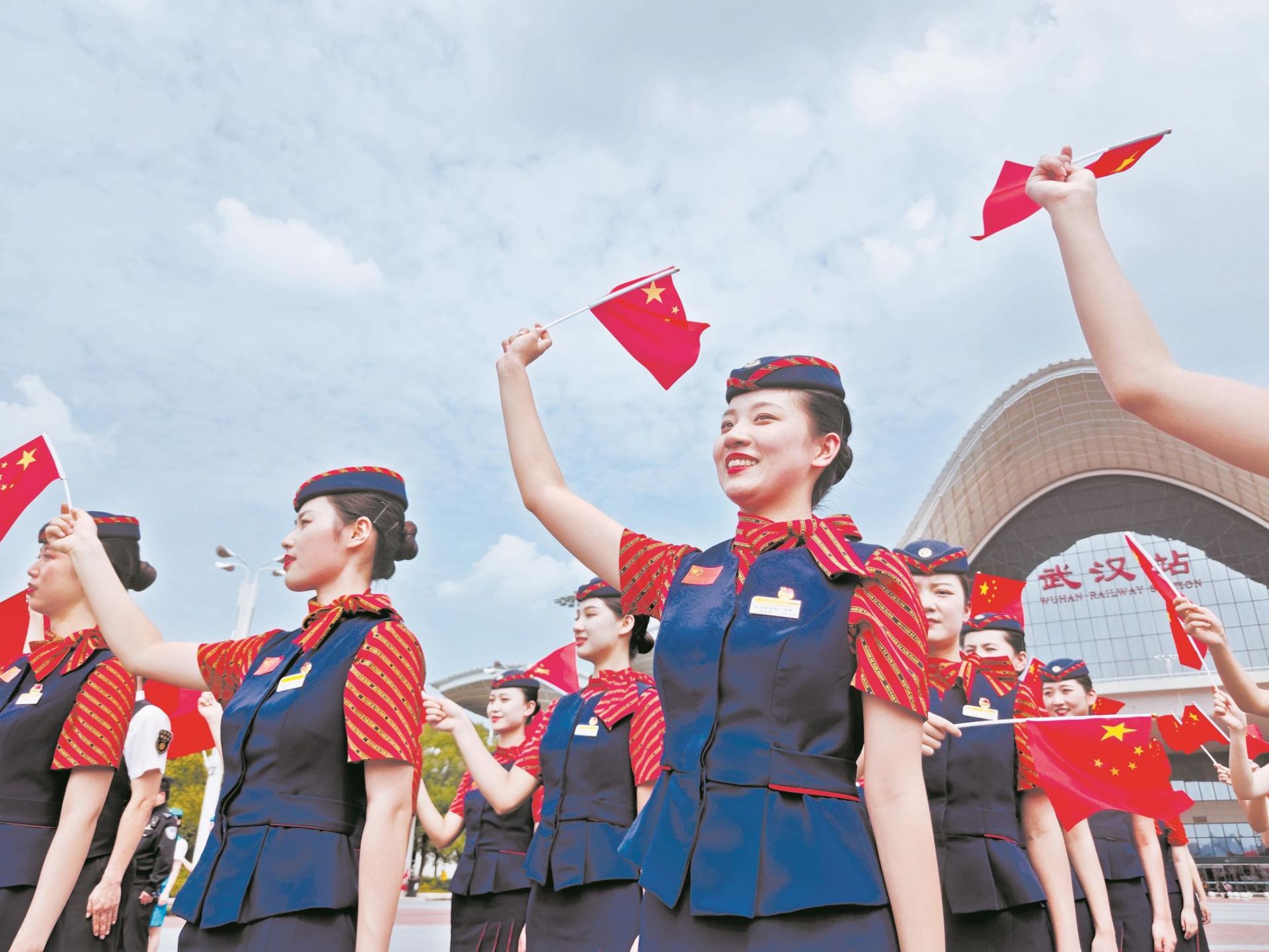 昨日,百余名高铁乘务员、民警、消防员组成团队,在武汉站玩起快闪,为旅客表演文艺节目。当日,武汉铁路部门启动十一黄金周列车运行方案,至10月8日,将加开客车1047列,应对节日客流高峰。