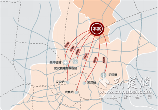特殊的地理位置,使得武汉北的交通极其便利,20 分钟可抵达汉口高铁站,直达全国100多个大中型城市;40分钟可达天河国际机场,直飞全球五大洲。